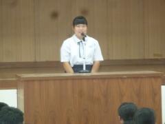 今朝は、それに向けての激励式を行いました。出場する生徒からの抱負、そして生徒会長より激励のあいさつがありました。