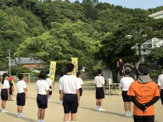 7月20日(木)、第1学期終業の日を迎えました。今朝は、9月17日(日)に開催します「西門川小学校・中学校合同運動会」の結団式を行いました。