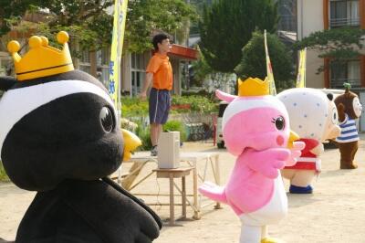 保護者、地域の方々にも参加いただき、さらにゲストとして門川町のキャラクター「カドッピー、ガワッピー」「ミヤザキケン」等も加わり、盛り上げてもらいました。