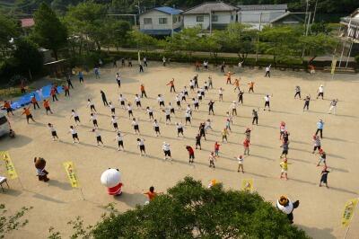 21日(金)の門川町一斉ラジオ体操では、西門川においても、112名の参加があり、盛り上がりました。