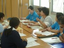 分科会では、各校区ごとに分かれて児童生徒の状況説明や意見交換を行いました。