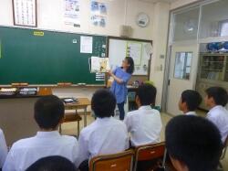 以前、都城市内で勤務されていた時のクラス合唱のDVDをもとに、歌うことの大切さを話されました。運動会での国歌・校歌斉唱や来月の文化祭での合唱に生かされてくると思います。