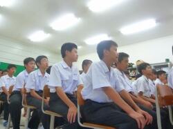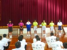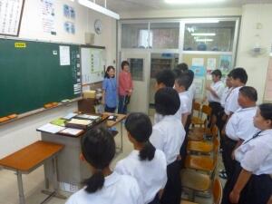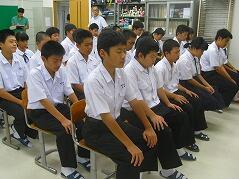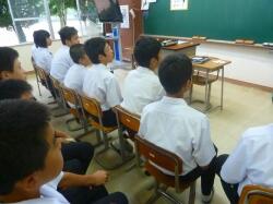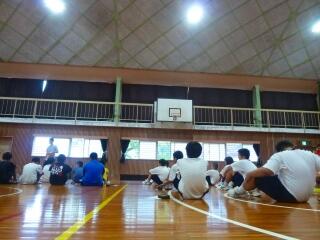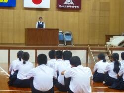 以前、都城市内で勤務されていた時のクラス合唱のDVDをもとに、歌うことの大切さを話されました。運動会での国歌・校歌斉唱や来月の文化祭での合唱に生かされてくると思います。