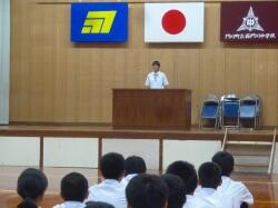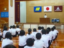 川内田さんより「西門川中生としてもてる力を出して悔いのない試合をしてきてください」という激励の言葉がありました。