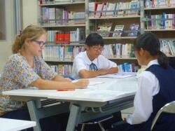 昼休みは小学生、中学生、前回借りた本の返却と貸し出しにたくさんやってきます。
