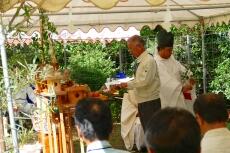 式典では、「修祓の儀」(斎田や参列者などを祓い清める儀式)が最初に行われ、その後,