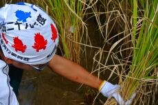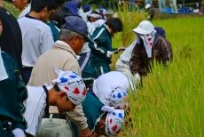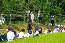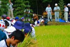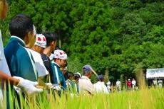 「抜穂の儀」で一斉に稲刈りが行われました。
