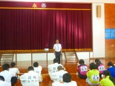 全校集会は宮脇先生の話です