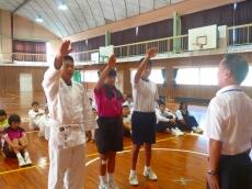 練習ができたのは国歌と運動会の歌、団技「台風の目」の練習、そして残りの時間は応援練習でした。狭い体育館を工夫しながら練習しましたが、子どもたちにとっては物足りなさそうでした。