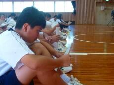 今日は地域の方へ「小中合同運動会」の招待はがきを全校生徒で分担して書きました。この取組は毎年行っていて、小学生も分担して、地域の方へ160枚程度、そてい今年3月に西門中を卒業した高校1年生にも送ります。多くの方々が運動会に来てくださることを楽しみにしています。