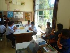 6校時に計画していましたが、午後から天気が崩れるとのことで、急遽、1校時に変更して準備を行いました。後半は、係ごとの打合せも行いました。