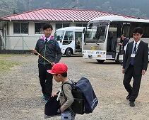 学期はじめということもあり、今週は職員によるあいさつ運動を行っています。特認区の生徒(2,3年生は27名)は、スクールバスで通学していますが、西門川校区の生徒(3名)は自転車または徒歩で通学しています。