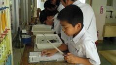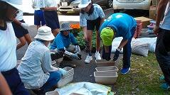 西門川中学校ではホタル再生プロジェクトに取り組んでいます。6月初旬に灯りを出し、パートナーを探していたホタルに、新しい命が産まれました。子どもたちはその数やエサとなる川になの幼虫を数えたり顕微鏡を使って、観察したりしていました。