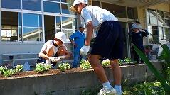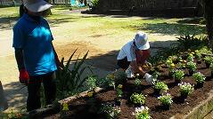 今日はよく晴れ日差しも強かったのですが、1時間の活動で予定していた苗をすべて植え終え、学校が美しくなりました。