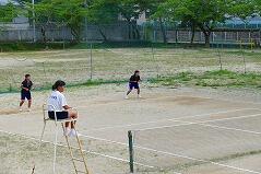 ソフトテニスの団体戦は3チームのリーグ戦で予選を行い、西門川中は2敗し、決勝トーナメントには進めませんでした。
