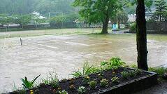 今日は朝から雨が降っていました。昼前には大粒の雨に変わり、運動場も水がたまってしまいました。ソフトテニス部の子どもたちは卓球部と一緒に体育館で放課後の練習をしていました。