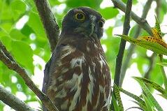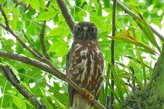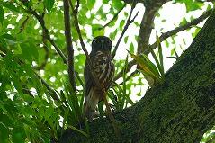 西門川中の運動場にはせんだんの木があります。例年この時期になるとこのせんだんの木に”あおばずく”がやってきます。今日は今年初の1羽が来ていました。