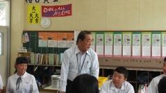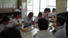 給食を一緒に食べた子どもたちは、初めは緊張していましたが、町長が気さくに話してくださり、楽しみながら食べていました。昼食後は生徒を代表して生徒会長がお礼の言葉を述べました。