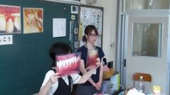 先週1、2年生がしていただいたブラッシング指導を今日は3年生にしていただきました。給食後は毎日歯を磨いていますが、正しいブラッシングができていない生徒も多くいました。しかし、歯ブラシは全員きれいでしたので、子どもたちの意識は高いようです。