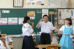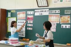 6月4日から6月10日は”歯と口の健康週間”でした。子どもたちは朝、夕だけではなく、給食終了後もきちんと歯を磨いています。しかしよく見ると、歯ブラシの持ち方や使い方がおかしい子どももいます。そこで今日は門川町の保健師さんと歯科衛生士さんに来ていただき、正しい歯の磨き方などのブラッシング指導を行いました。