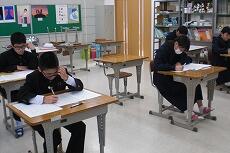 2年生が初めて実力テストを受けました。今回のテストは県北地区の中学生の多くが受け、その中での全体順位や希望する高校・学科での順位も出ます。自分が希望する高校の学科を決めてからのテストです。2月始めには結果が出ます。来年の高校入試に向けた勉強はすでに始まっています。