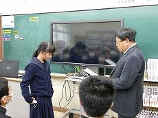 今日の宮崎県内は20℃を超えるほど暖かな日でしたが、西門川は終日曇り空で気温も上がらず、特に午前中は寒さを感じました(玄関付近の気温は12.9℃でしたが、廊下は寒く感じました)。西門川中学校は山間部にあるため、海岸部と比べると気温も3℃位低くなります。そのため、教室にはストーブが設置してあります。