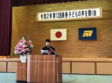 1月18日(土曜日)に「第12回門川町新春子どもの声を聞く会」がクリエーティブセンター門川で開催されました。西門川中の代表生徒(2年生)は、西門川や西門川中の思い出とともに、「ふるさと門川」に対する思いを堂々と発表しました。