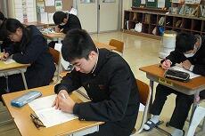 昨日の始業の日は年明けで給食が準備できなかったため、午前中で終わりました。今日から通常の教科の授業が始まり6時間授業でした。3年生の授業では、明日明後日の実力テストに向けた勉強もしていました。