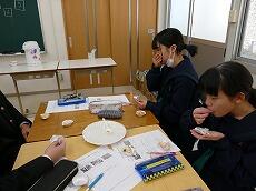 3年生の美術の授業は、雲龍貼りPETシートと切り絵でランプシェードを作っています。下絵が終わり、カッターで切っている生徒もいれば、下絵を丁寧に描いている生徒もいます。それぞれの個性が出たランプシェードの完成が楽しみです。