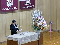 別れのことばの最後は、この3月で定年退職を迎える校長先生でした。最後に勤務した学校が西門川でよかったと、生徒や職員、保護者や地域の方を前に感慨深く話されました。