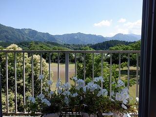グラウンド。そして鮮やかな木々の緑。遠くには山なみ・・・