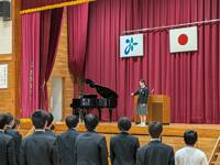 式では、1年生、6年生の学園生代表が作文発表を行いました。どちらの学園生も、2学期にできるようになったことや、2学期の課題を踏まえて3学期にがんばりたいことを堂々と発表することができました。