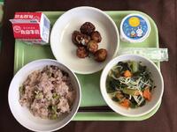 今年の十五夜は、10月6日です。少し早いですが、今日は十五夜献立にしました。十五夜とは、1年の中で1番空が澄み渡る日に、美しく明るい月を眺 める行事のことで、「お月見 」とも言われています。今日の給食は、お月見の文化を感じてもらえるように、里芋を使った揚げ里芋の田楽と萩ご飯、魚ソーメン汁に十五夜デザートです。萩ごはんとはあずきが8月から9月にかけて咲く萩の花に見えることが名前の由来になっているそうです。暑かった夏もやっと終わり、やっと涼しい風が吹いてきました。今日も笑顔が絶えない給食時間でした。