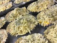 今日のグラタンは、学園生のリクエストメニューです。学園生みんなが喜ぶ大人気のメニューです。ホワイトソースから手作りしてチーズやパン粉をちらしてオーブンで焼き上げました。寒い冬にピッタリのメニューです。給食時間前の休み時間。ろうかですれ違う学園生から『今日はグラタンですね~♪』と聞こえてきました。みんな給食時間が楽しみみたいです。空っぽになった食缶が返ってくるのが楽しみです。