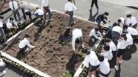 5年生が6月10日(木)に、美郷科学習で、田植え体験学習をしました。ひもの線と点に沿って苗を植えましたが、なかなか真っ直ぐには植えられませんでした。しかし、児童はとても楽しそうに学習していました。中には、泥がいっぱい洋服について、片付けで洗うのが大変そうでした。