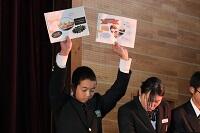 今日は美郷の日給食です。美郷町で作られた食べ物をたくさん使った「秋野菜の煮物」です。美郷町で作られたしいたけ、西郷で育てられたじとっこと栗を使いました。また、和え物には、秋が旬の柿を使った「柿なます」を作りました。秋に一番おいしく食べられる旬の食べ物をたくさん使った美郷の日のメニューです。急に寒くなったので体調管理に気を付けて沢山食べてほしいと願っています。