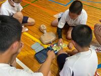 救急救命士から胸骨圧迫、人工呼吸、AEDの使い方を中心に説明をいただき、実技を通して学びを深めました。