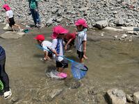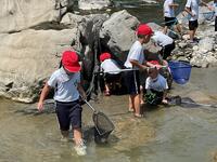 上小丸川漁業協同組合の方々のご指導のもと、幼稚園生と1年生がうなぎの放流を行いました。