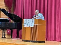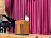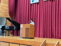 2名の学園生代表が壇上に立ち、1学期にがんばったことや2学期以降の抱負などを発表しました。2名とも堂々とした発表でした。すばらしかったです。