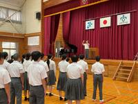 始業式では、2名の学園生が「2学期の抱負」を発表しました。「勉強をがんばりたい」、「部活動にもっと力を入れたい」、「運動会の練習に精一杯取り組みたい」など、それぞれ具体的な目標を立てていました。