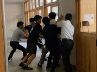 不審者の侵入を想定した避難訓練を実施しました。不審者の侵入に気付いた職員が他の職員へ異常を報告し、全職員で役割分担をして学園生の安全を確保するという内容でした。緊張感のある訓練でしたが、学園生は落ち着いて指示を聞き、行動することができていました。