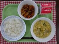 今日は、中華メニューの献立でした。酢豚は、ケチャップ・酢・砂糖・しょうゆで味つけした野菜のあんと一緒に和えました。コーンスープは、鶏ガラスープのだしとごま油の風味で中華風に仕上げました。みんなよく食べていました!