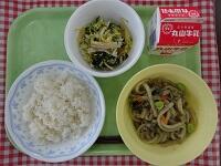 6月4日~10日の「歯と口の健康週間」にちなんで、今日はカミカミ献立でした。「ごぼう」を使った「かみかみごぼうサラダ」は、かみごたえがあり、しっかりかんで食べないとのみこめません。一口30回かんで食べることを意識していってほしいと思います。