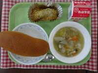黒糖パン かぶのスープ 白身魚の香草パン粉焼き 牛乳