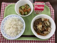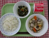 今日は美郷の日給食です。美郷町で作られた食べ物をたくさん使った「秋野菜の煮物」です。美郷町で作られたしいたけ、西郷で育てられたじとっこと栗を使いました。また、和え物には、秋が旬の柿を使った「柿なます」を作りました。秋に一番おいしく食べられる旬の食べ物をたくさん使った美郷の日のメニューです。急に寒くなったので体調管理に気を付けて沢山食べてほしいと願っています。