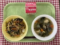 麦ご飯 根菜ごまキムチ汁 韓国風宮中トッポギ 牛乳