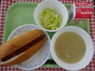 今日は、4月22日・23日に宮崎市で行われる「G7サミット農相会合」を給食でも盛り上げよう!ということで、『サミット給食』を実施しました。第1弾は、『ドイツ』です! 献立名もドイツ語になっていて読みにくいですが、カルトッフェル(じゃがいもの)ズッペ(スープ、カリー(カレーの)ブルスト(ソーセージ)、ザワー(酸っぱい)クラウト(キャベツ)という内容でした。カリーブルストは、ケチャップにカレー粉を混ぜたソースをソーセージにからませて焼きました。カレー粉が効いていて辛味がありましたが、パンにはさんで食べるととても美味しかったです。この機会に、ドイツの料理や言葉など覚えてもらえたらな、と思います。