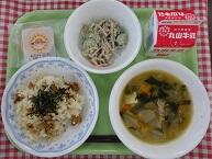 今日は、4年生のリクエスト献立でした。ダントツで「鶏天ご飯」が1位でした!根強い人気の「鶏天ご飯」。多めに作りましたが、きれいに食べてくれました。「鶏天ご飯」と同じくらい、「りっちゃんサラダ」も人気です。「サラダでげんき」の内容と同じように、色々な食材を入れて作りました。味の決め手は、かつおぶしと昆布です。普段野菜をあまり食べない子も、食べていました。
