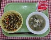 今日の主菜は、名前の通り、ピリリと辛いピリ辛煮でした。豆板醤の辛さが効いていて、食べた後は体がとても温まっていました。辛さが苦手な子たちは、牛乳を飲んだり、ご飯を食べたりしながら、頑張っていました。