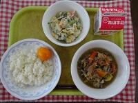 寒さが一段と厳しくなってきたので、今日の「ビビンバ丼」はいつもより辛味を少しだけ強くしました。その分、味もしっかり付いたので、ご飯がとてもすすみました。給食のご飯は、12月12日(月)から新米になっています。美味しい特Aの美郷米を給食でもいただくことができ、とても嬉しく思います。